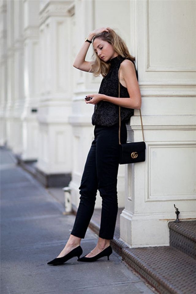 帅气的裤装加上女人味的猫跟鞋,是不是听上去就很酷!今年最in 的look就是职业装+猫跟鞋了!完全把大女人的潇洒、独立与自信展现出来了。