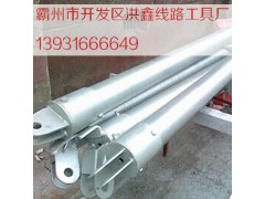 4、三角架铝合金立杆机立起后应保证三杆头部连接处与线杆坑底部垂直。