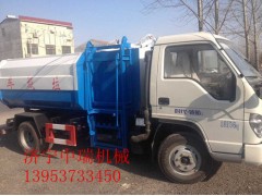 利用液压机构自动将垃圾箱举升至货箱顶部并将垃圾倒入车箱内部,再自动将垃圾箱放置地面;车辆箱内垃圾满后,可以通过举升货箱来通过货箱后门把垃圾卸至垃圾处理厂。