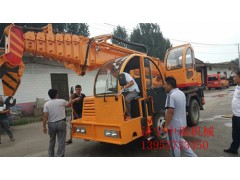 吊车专用底盘,四缸柴油发动机,内齿50锰钢回转支撑,外齿转盘1.3米 无限旋转中心回转,可连续360度转向工作,六棱型吊臂,全自动液压伸缩支腿,吊装带高低速空挡、自动刹车,吊装采用可靠耐用的专业减速机,空构快速下降设计,液压系统采用无级变速系统,大大提高工作效率,流线型驾驶室,配有液压油散热器 在吊车长期工作时 液压油不会高温,保证吊装时吊车的速度正常工作 不受影响。大臂上配有夜间工作灯,大大提高工作视野,液压油管采用知名厂家双层钢丝油管,操作时不会漏油,钢管为镀锌油管,永久不会腐蚀,轨道齿面调淬火(保用10年)。 全液压全自动H型支腿、伸臂油缸、液压卷扬机、回转减速机、转盘、液压锁、液压油泵、多路液压操作阀,全部采用徐工三一吊车和泰安吊车配套配件
