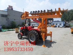电线杆打眼机特点:全部采用液压控制,操作方便,单人即可完成操作,钻孔速度快,再普通黄粘土层最快钻孔速度为47秒,钻孔直径为500mm,深度为1米。再硬土层例如:路基,地基,保证没有大块石头的情况下钻孔速度为2分钟,冻土层可配冻土钻头钻孔速度为5分钟左右。本打桩机解决现有技术中打桩机体积大、笨重,无法再面积窄小的地盘施工的问题,另外本打桩机还具有投入小、回报大、效率高、体积小、重量轻、操作简单、施工方便、打出的桩孔质量好等优点。