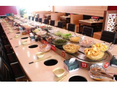 我公司回转输送设备是以低价格.高品量赢取客户的支持。设备餐台台面的装饰材料可以选择人造石,大理石,金刚石等,