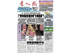 《老人报》创刊于1984年5月,是国内最早为老年人创办的报纸,长期立足广东,面向全国发行,经过22年的发展,如今《老人报》已成为全国发行量和广告量最大的老年人报刊。它围绕老有所养、老有所医、老有所学、老有所教、老有所为、老有所乐等话题,开设的栏目有《爱是永恒》、《社会聚焦》、《保健养生》、《医疗卫生》、《生活百事》、《时尚收藏》、《一周闲情》、《益寿饮食》等近二十个专版,近百个专栏,集可读性、实用性、服务性、休闲娱乐性为一体。1999年,《老人报》正式成为广州日报报业集团的系列报之一,依托报业集团的强大优势,在新闻采编、市场拓展等方面有得天独厚之便,因而发展迅速,目前每期发行量32万,一年广告营业收入950万,成为广东三大报之外,知名度较高的媒体之一。《老人报》定位明确,读者对象以50岁至75岁居多,直接进入老人家庭,广告效果明显,希望和客户携手合作,共创佳绩。