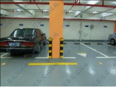 为增加停车场柱面的醒目性,避免因倒车碰到柱子,柱子下端1.0~1.2米以下可采用黄色和白色相间斜纹斑马线进行标明。